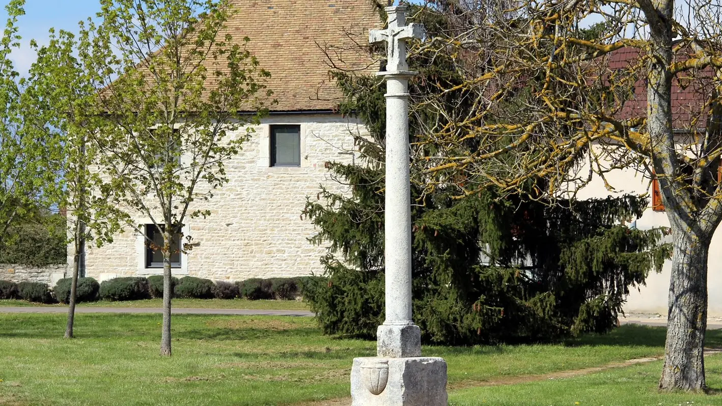 cette croix commémorative rappelle le souvenir d’un certain Pierre Verjus, cultivateur et vigneron. Elle est datée de 1866.