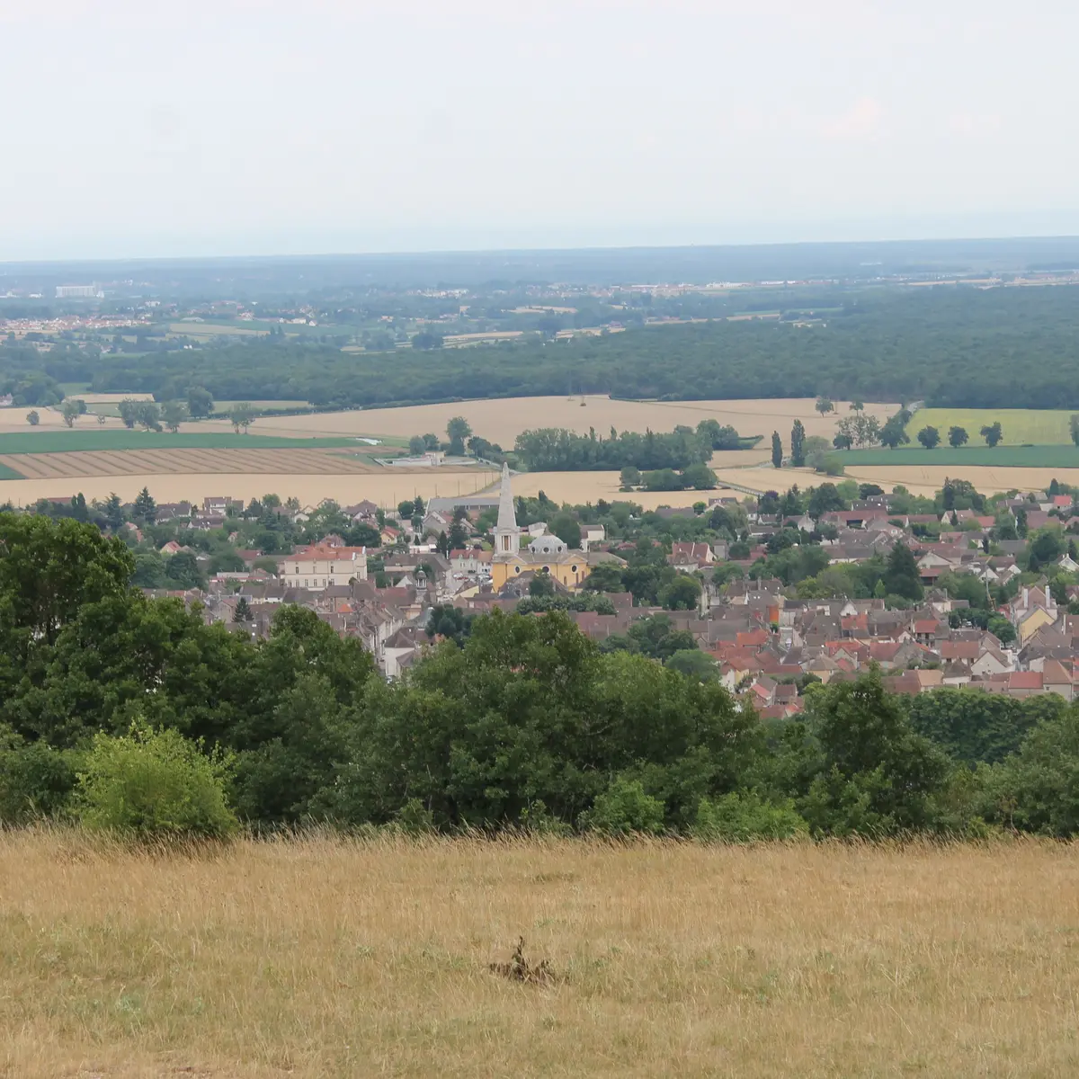 A partir de (4), suivre le chemin de grande randonnée GR7. Trouver les marquages du chemin sur les pierres en direction du sud. Très vite le chemin descend tout droit. A la «Chaume de Russilly» (5), prendre à droite et descendre le chemin pierreux. Passer la barrière et la refermer. Passer devant l’élevage de chèvres. Au carrefour en T, descendre la route à votre gauche. Passer devant la fontaine et descendre à gauche puis à droite. Passer devant le four communal, puis devant le lavoir. Poursuivre la descente de la route et prendre à droite, la première rue qui remonte vers l’église pour retrouver le peuplier gras, arbre de la liberté planté à la révolution de 1789 et dont le diamètre mesure 5,3 m.