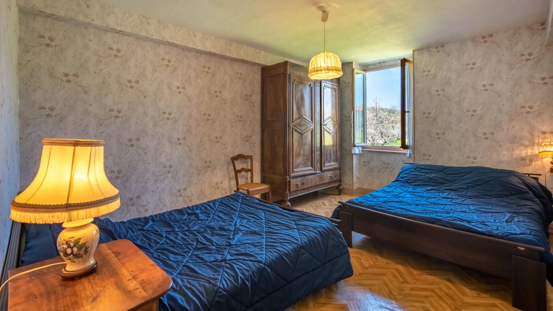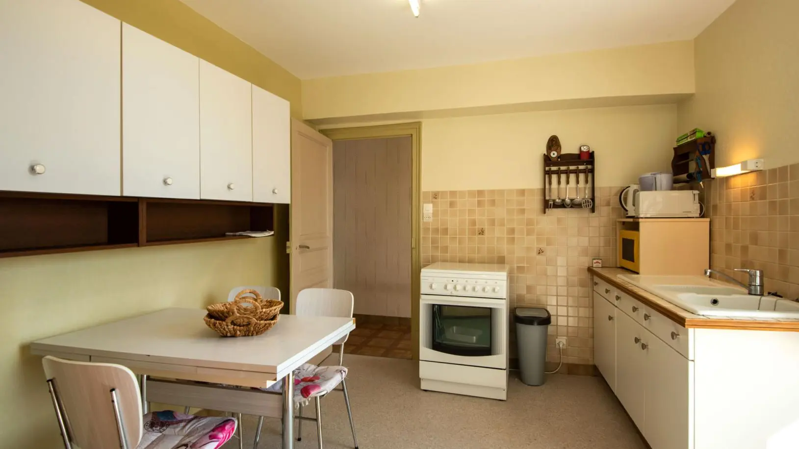 Composition: Detached house. Wi-Fi (fiber optic). Electric heating. First-floor apartment (accessible via an external staircase): kitchen, living/dining room, 2 bedrooms (one with a 160x200cm double bed and the other with two 140x190cm double beds), shower room, separate WC. Balcony, bicycle storage, carport (2 spaces), and private parking. Enclosed grounds (400m²) including a barn and the owners' vegetable garden (use of the property and access by the owners are possible).