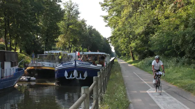 Champforgeuil marque aussi le départ de la voie cyclable longeant le Canal du Centre, empruntée par de nombreux promeneurs et cyclotouristes. Cet itinéraire rejoint l’EuroVelo 6, l’un des grands axes cyclables européens reliant l’Atlantique à la mer Noire, faisant de la commune une porte d’entrée idéale pour l’itinérance douce. Il se poursuit par Farges-lès-Chalon où l’on quitte la ville pour trouver la quiétude du canal et de la campagne chalonnaise.