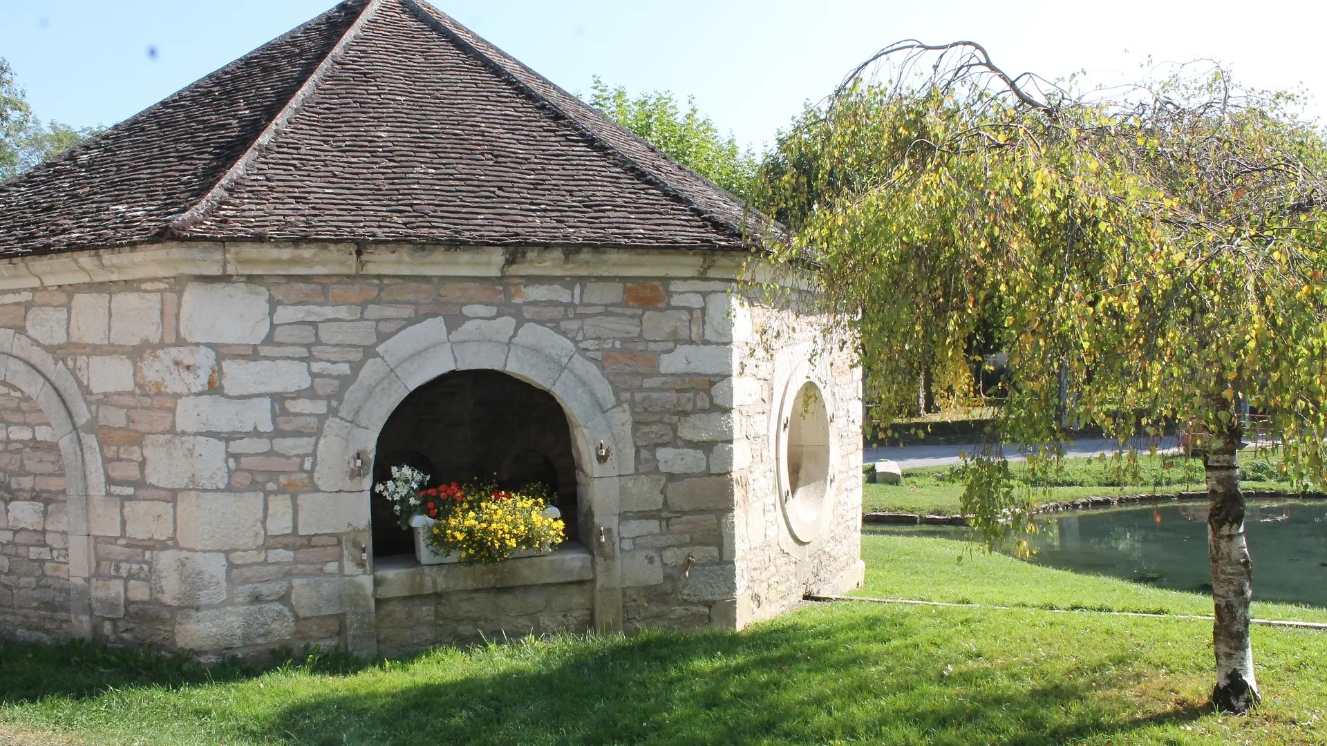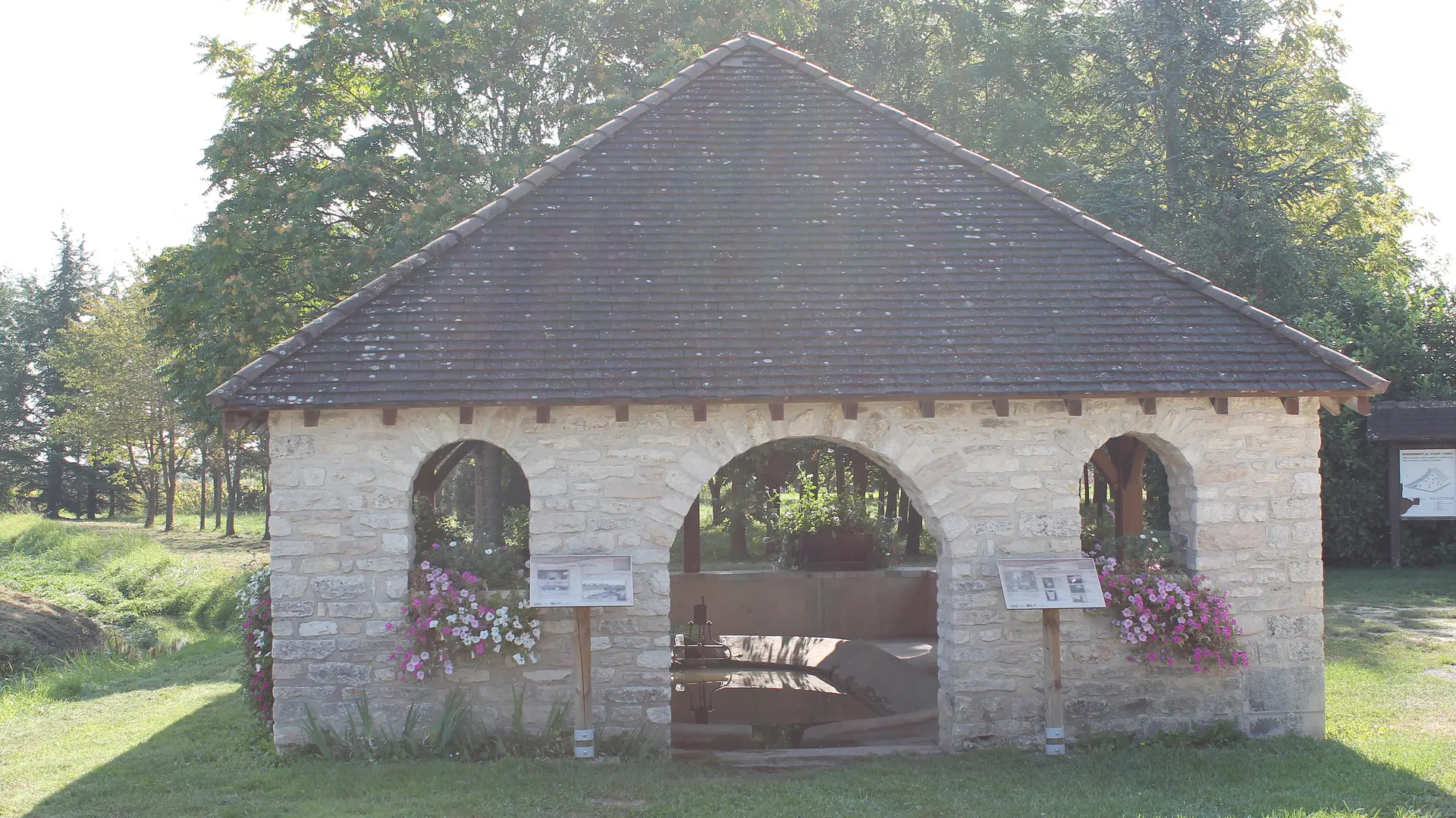 Construit en 1849, il est situé en bordure de rue. De forme rectangulaire, il porte une toiture à deux pans. Deux portes et une fenêtre à l’avant, une fenêtre côté ruisseau, toutes cintrées, en assurent l’éclairage. Alimenté en amont par une dérivation du ruisseau, le bassin rectangulaire comporte des pierres à laver sur ses quatre côtés. Une goulotte d’évacuation en pierre en fait le tour.