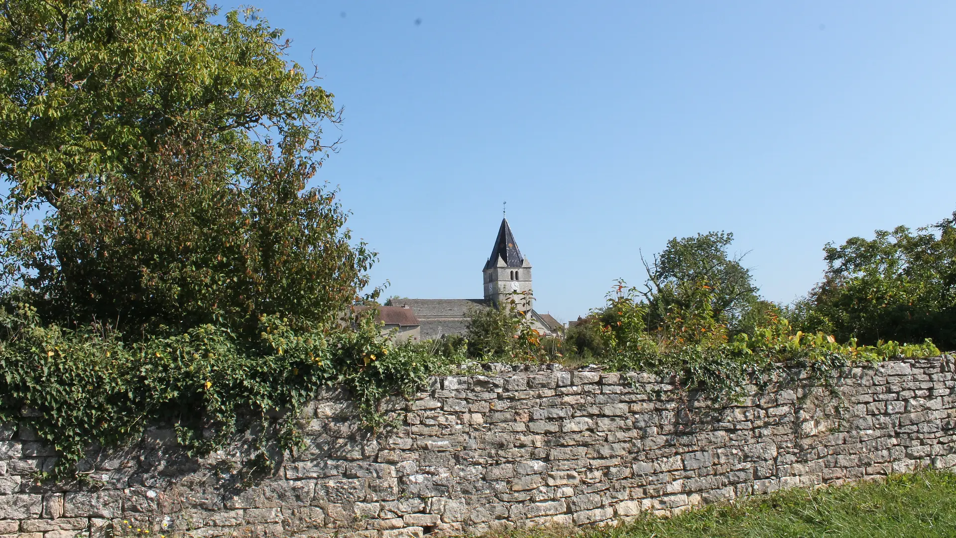Au niveau de la fourche avant le transformateur électrique, reprendre la direction de Fontaines. Vous apercevez sur la gauche la Tour Saint-Hilaire au sommet de la colline qui domine Fontaines. Continuer en repassant devant le cimetière puis reprendre le sentier du départ en sens inverse en suivant les indications des panneaux directionnels qui ramènent au lavoir Saint-Nicolas (FO3).