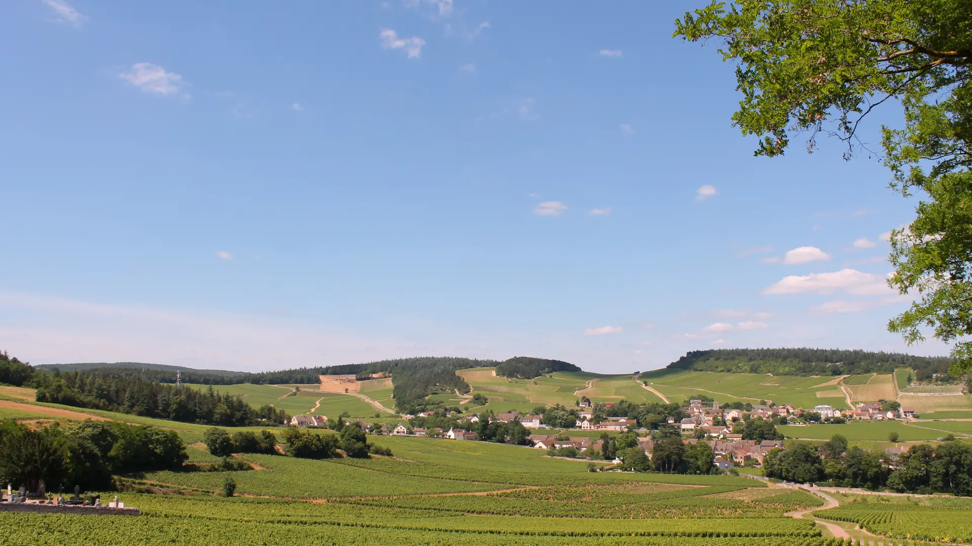 Vous arrivez à la statue de la vierge de Mercurey (5) – table d’interprétation et d’orientation. Poursuivre sur le sentier en direction du nord. Vous êtes sur le GR76.