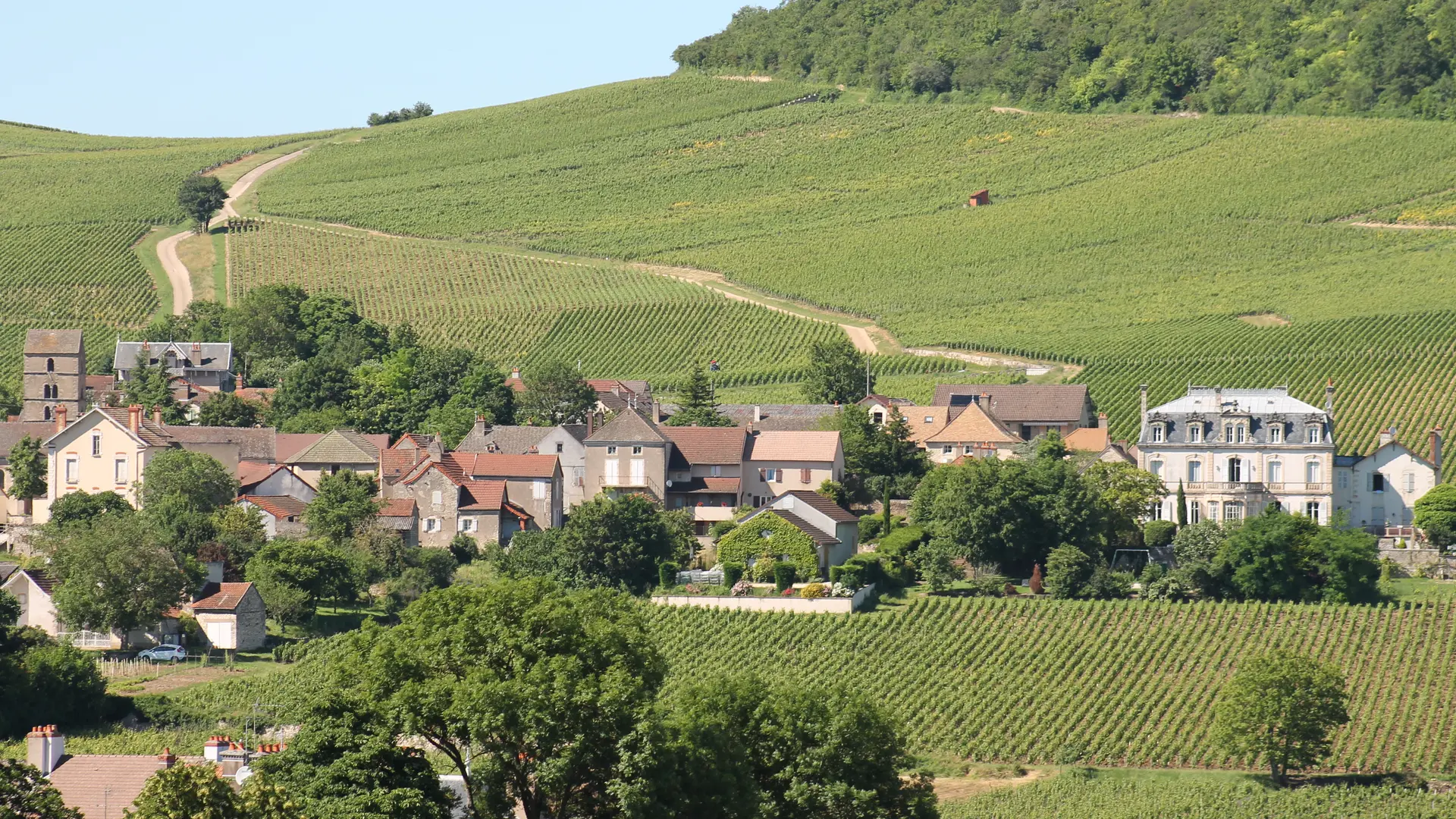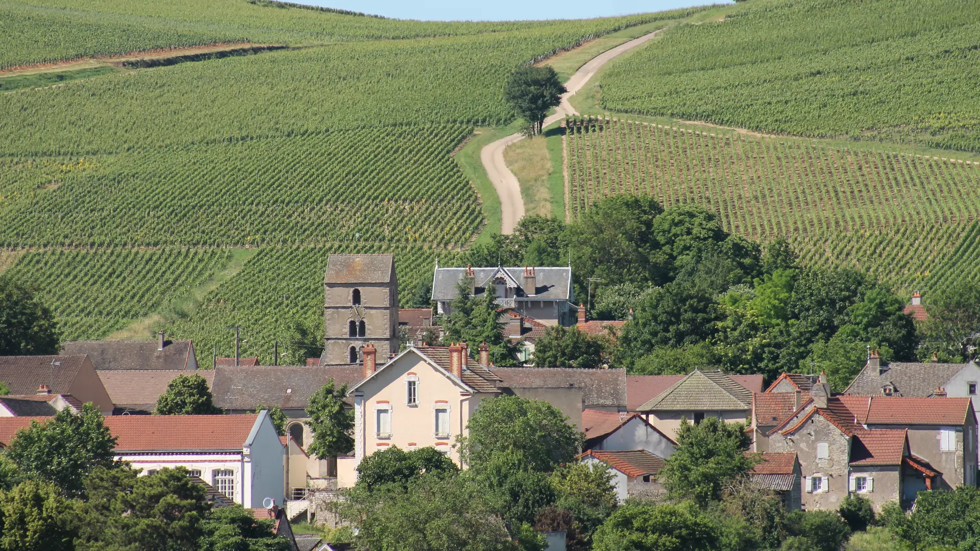 Dans le hameau, prendre tout droit puis à droite pour passer devant l’église Notre-Dame de Mercurey (7). Deux tables d’interprétation présentent l’église jadis et maintenant – Poursuivre dans la rue du Pont Latin, vers l’ouest.