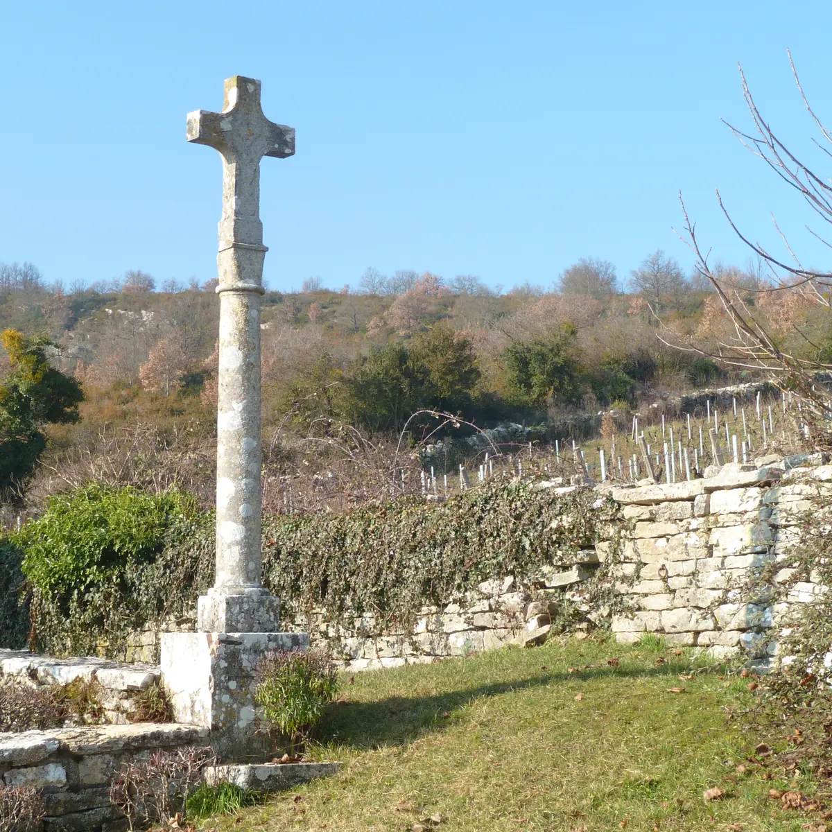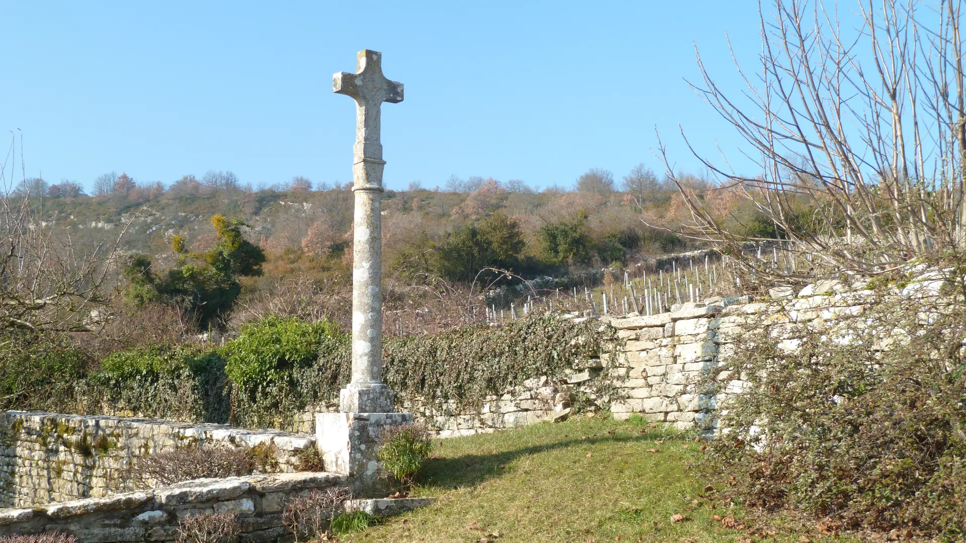 Lorsque le chemin remonte un peu, traverser les vestiges de la muraille d’enceinte de l’éperon barré* (le village