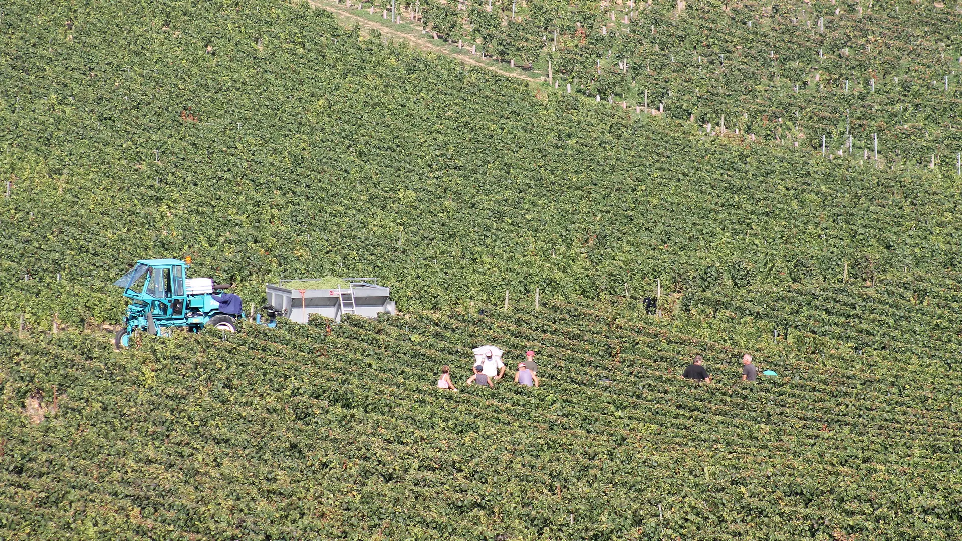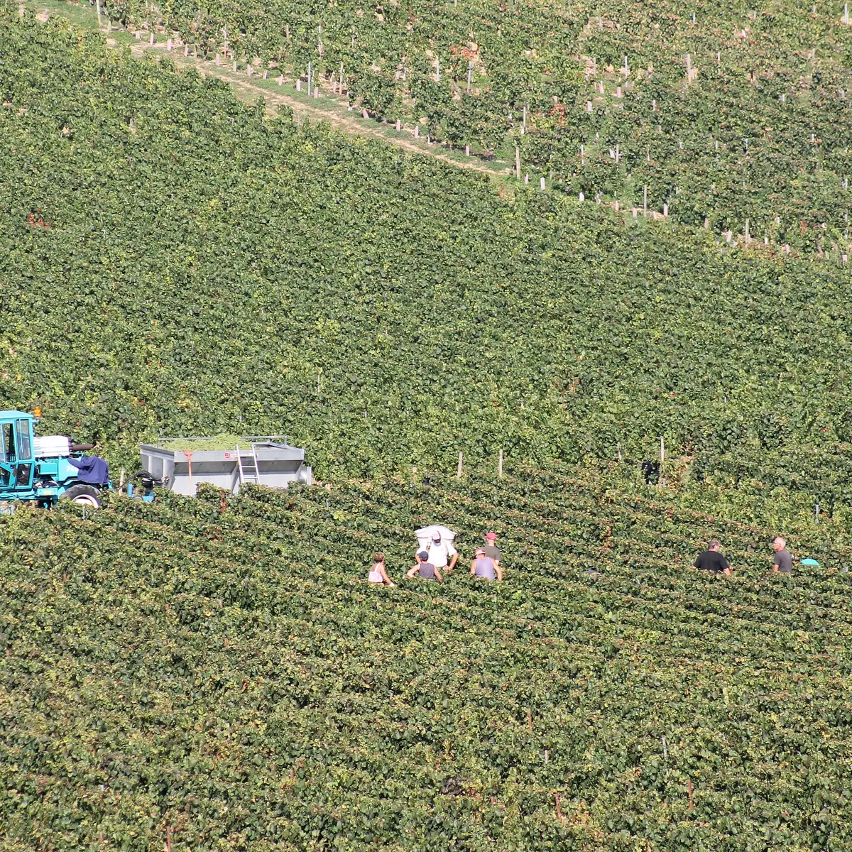 (4) En haut de la colline, en vue de la tour hertzienne, s’ouvre à l’est un magnifique panorama du village à Chalon-sur-Saône, puis la Bresse, le Jura, les Alpes et le Mont Blanc (avec un peu de chance !). Poursuivre toujours le GR76, qui se rétrécit en pénétrant dans les buis (très ombragé dès cet endroit).